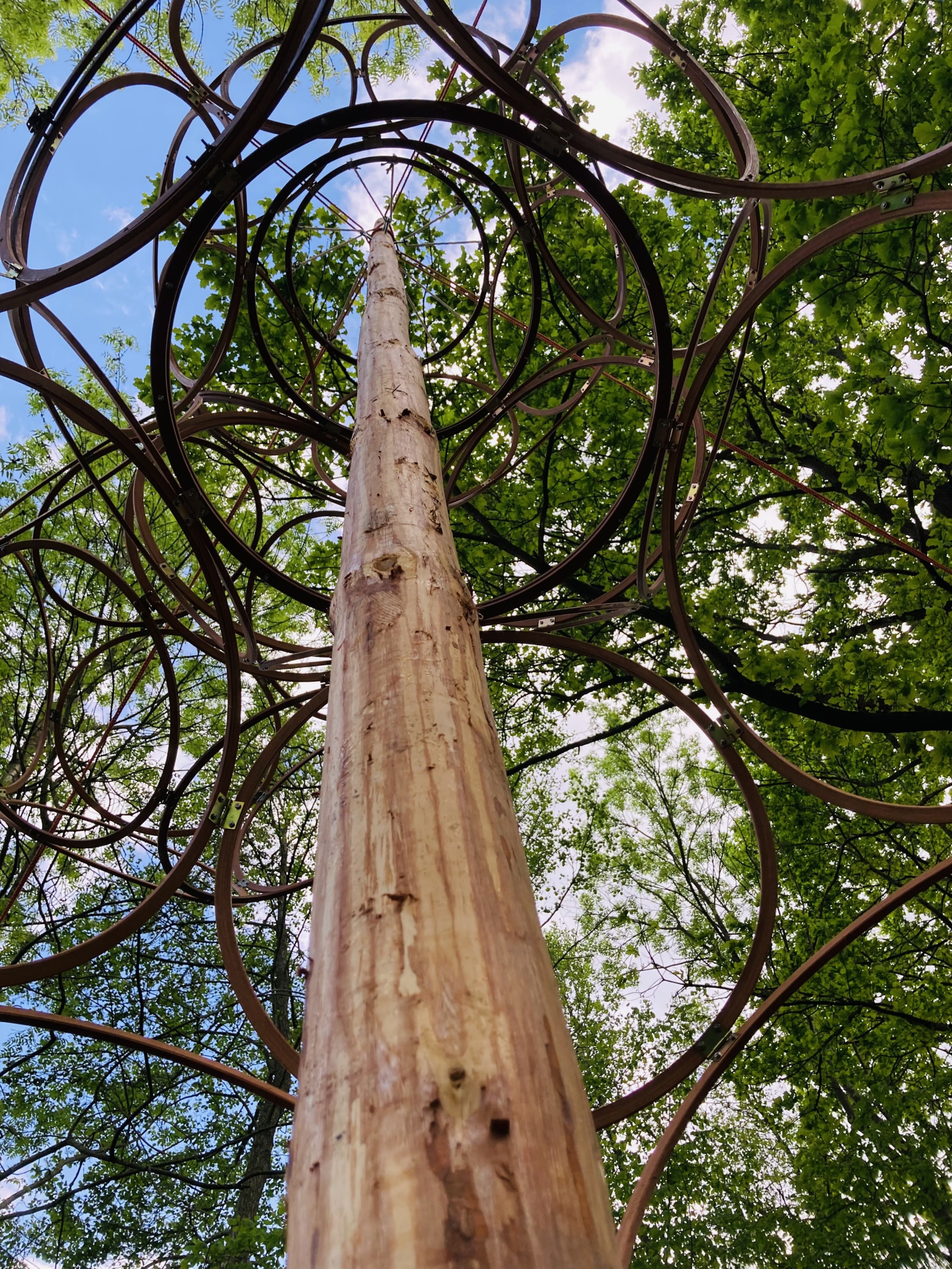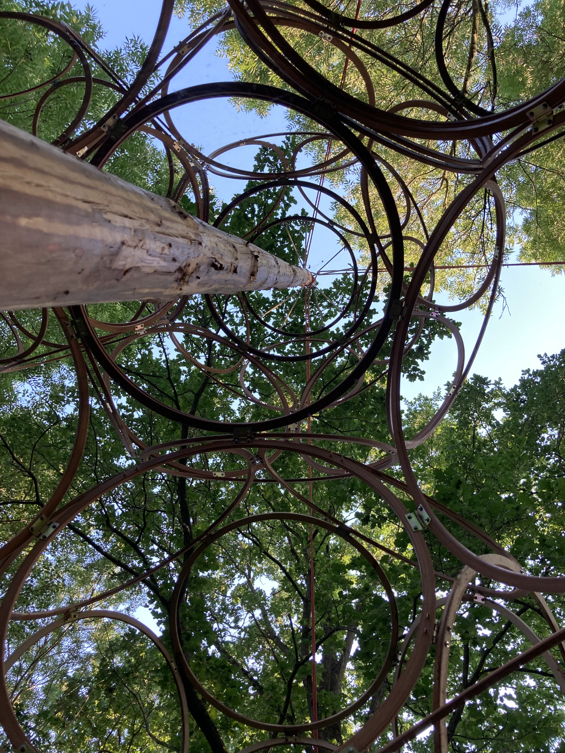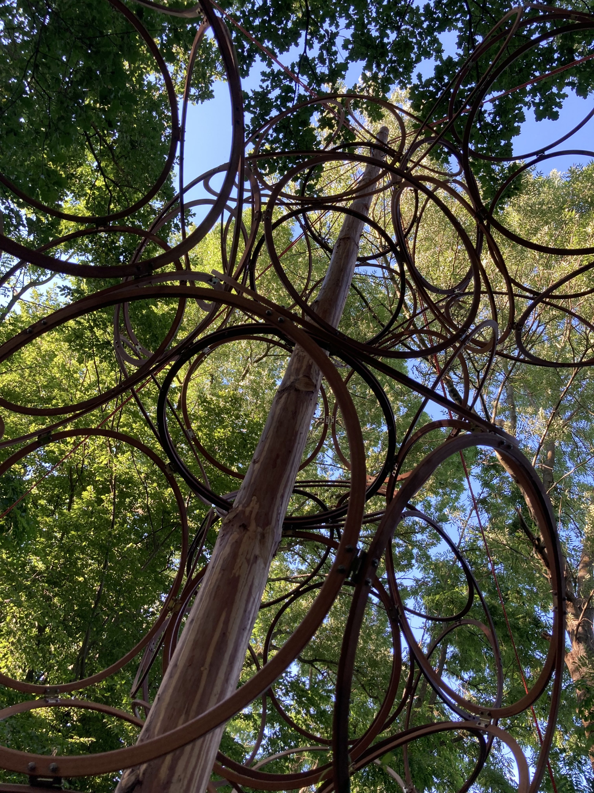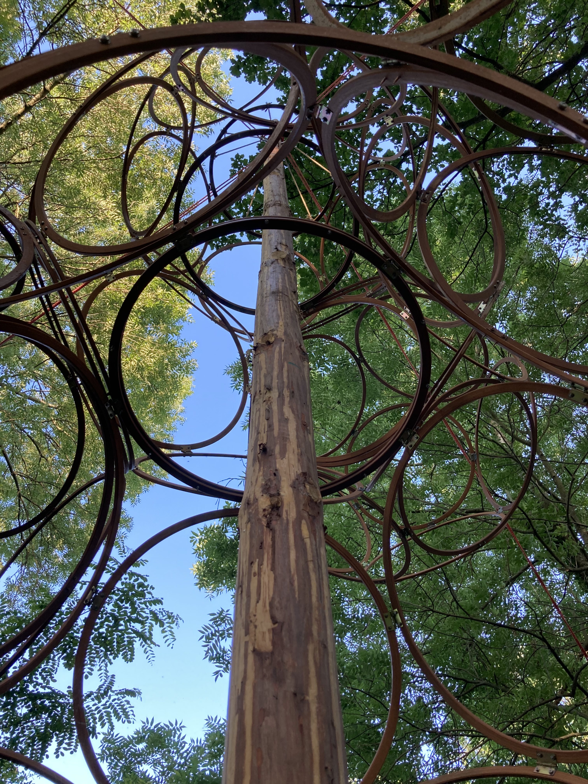 Das Erscheinungsbild von LIANAS TRELLIS verändert sich im Laufe des Jahres. Im Sommer schafft dichtes Laubwerk schattige, kühle Bereiche. Im Winter präsentiert sich die Struktur wieder offener. Wachstum und jahreszeitliche Veränderungen sind Teil des Designs.